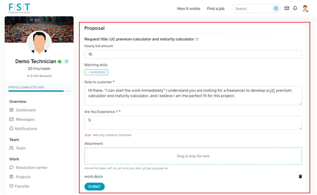 Once you click on the ‘BID NOW’ project, you can see a form. To place the bid successfully, you need to fill in the form